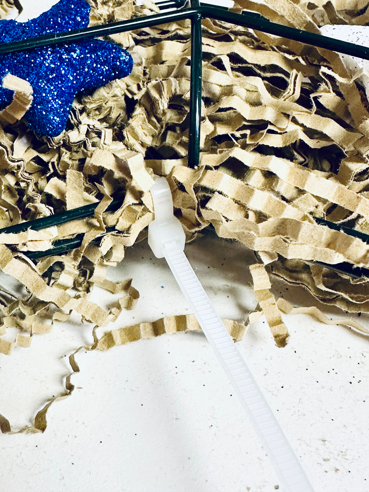Use the zip ties to secure the wire star wreath forms into place. Trim the ends.