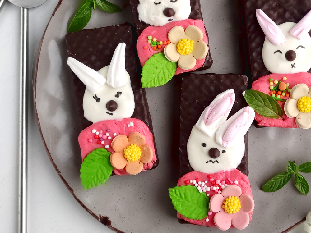 Serve the Easter bunnies on sweet boards. The dessert can be wrapped and given as a gift to someone. These bunnies can be hidden and let the children find them. Happy Easter!