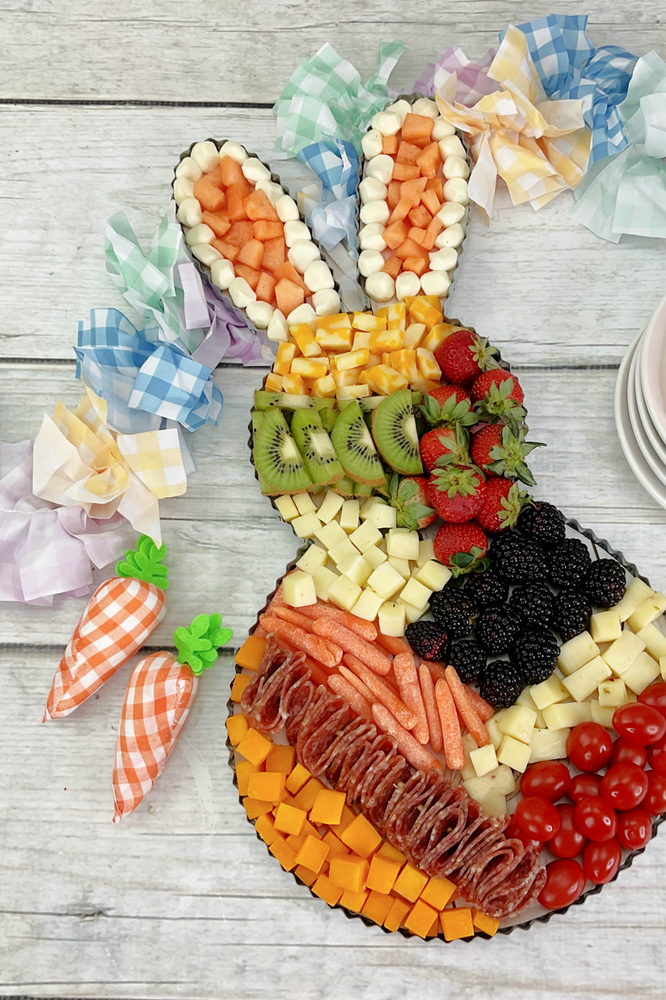This Easter bunny snack board is the perfect appetizer – made with just a few simple ingredients and some cookie cutters