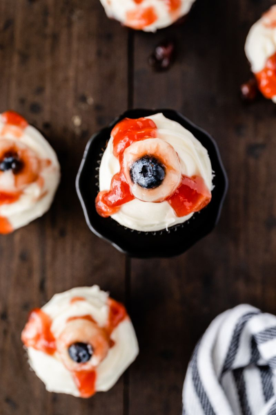 These cupcakes have such a cool and creepy look, but trust me, with blueberries and strawberry jam, these little treats promise to be extra tasty!