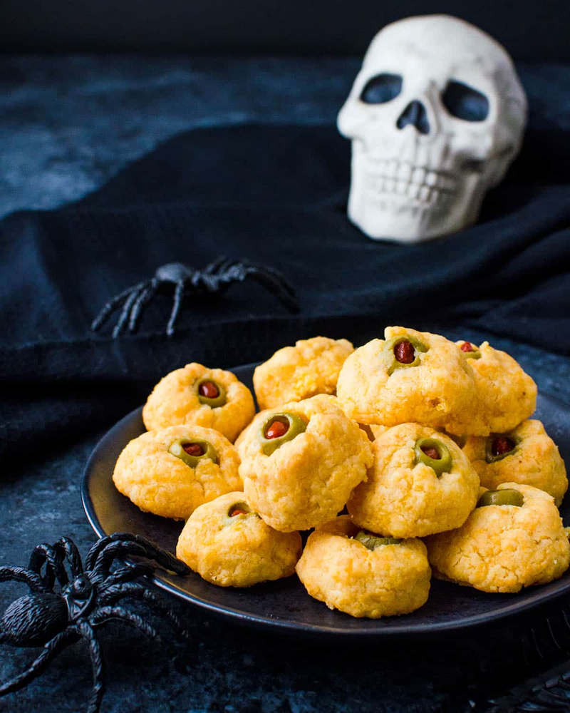 These little cheese balls are so tasty! They also look fabulous with an olive for an eye. Serve this with your savory appetizers for a Halloween night snack that is worth keeping an eye on.