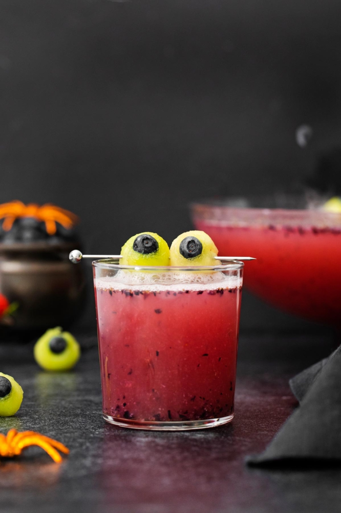 This Halloween punch is perfect to share with everyone. It is non alcoholic, and has the best eye garnish! This refreshing drink will be a hit at your party.