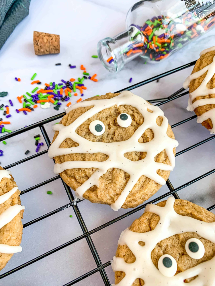 These cookies have the perfect taste of fall, and they are so easy to dress up! These mummy styled cookies are chewy, soft and so delicious.