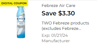 Ready to fill your home with the lingering scents of Christmas at an unbeatable price? Look no further than Dollar General! We've got exciting news for all the bargain hunters out there – Febreze Christmas scents are still up for grabs, and they're currently on sale at a jaw-dropping 25% off. But that's not all! With a fantastic digital coupon offering $3.30 off when you purchase two, you can snag these delightful aromas for an unbelievable final price of just $1.58 or a mere $0.79 each! Don't miss this golden opportunity to transform your living space into a winter wonderland without breaking the bank. Just remember that starting Tuesday 01/09 these will start at 50%.