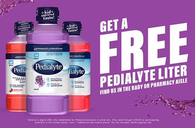 Get a FREE Liter of Pedialyte at Walmart! Just fill out the short form and they’ll text you the offer, which can be redeemed at Walmart. It’s valid through July 31st.