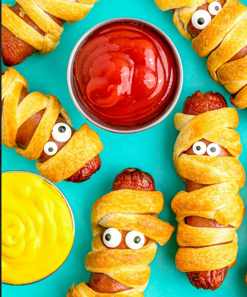 Wrap up a hotdog in crescent dough for a horrifying and tasty twist on dinner. Serve these for halloween and watch the family scream with delight at your creation.