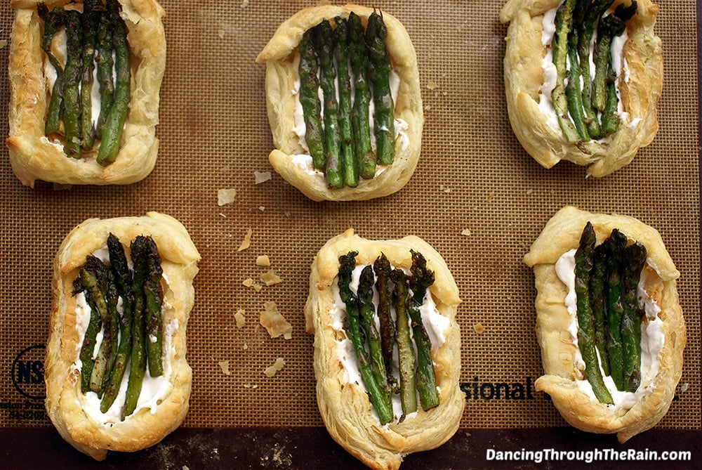 These puff pastry tarts are so delicious! They have the best horseradish cream sauce to compliment the asparagus.