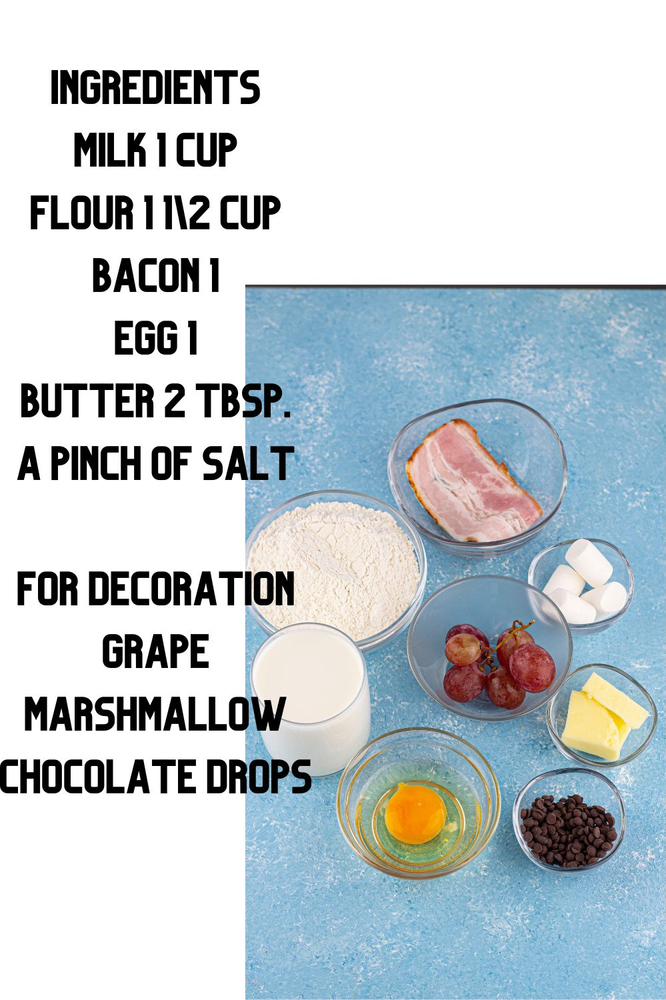 6.       Let's form horns from strips of bacon. And let's add ears.