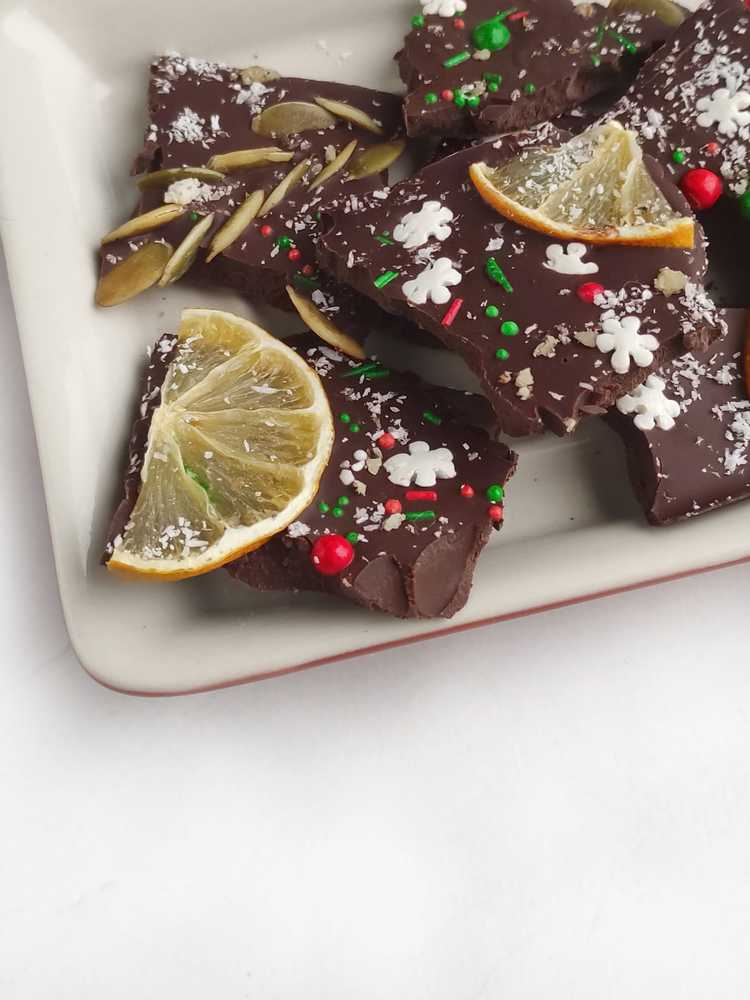 This dessert can be packaged and given as a gift Present the broken pieces to a sweet table or arrange on a candy board. Taking the idea as a base you can make your own variations with cinnamon, coarse salt, chili or raisins. Merry Christmas!
