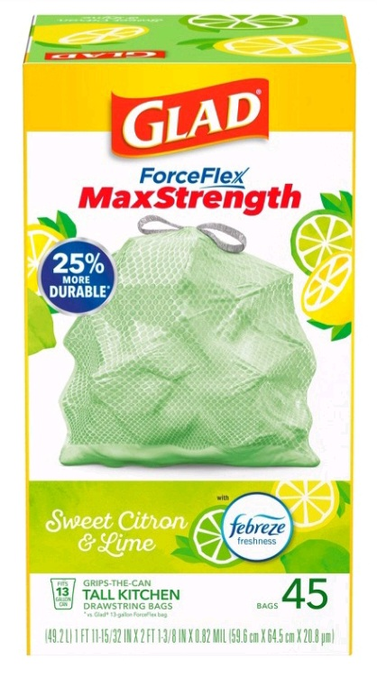 Buy 1 – Glad Max Strength Trash Bags, 45ct, $12.89 at Target