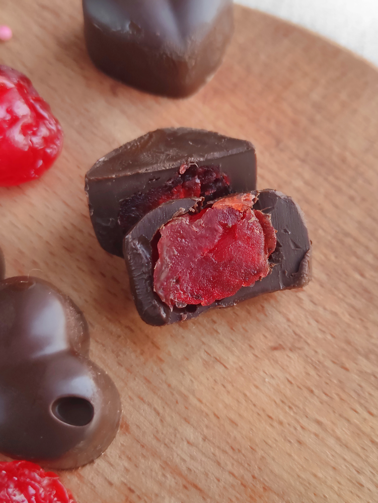 Try our delicious recipe for Chocolate Covered Cherries. This dessert combines the natural juiciness of cherries with the rich, velvety flavor of decadent chocolate. It combines candied fruit with a rich cocoa coating. For the recipe, we have taken quality dark chocolate with a high cocoa bean content in its composition. You can use milk or white chocolate. White chocolate can be tinted in any color with food coloring and each time you can get different candies according to the same recipe. For the filling we have chosen classic candied cherries. You can replace them with Moroccan cherries. When choosing molds for chocolate candies, give preference to silicone models.