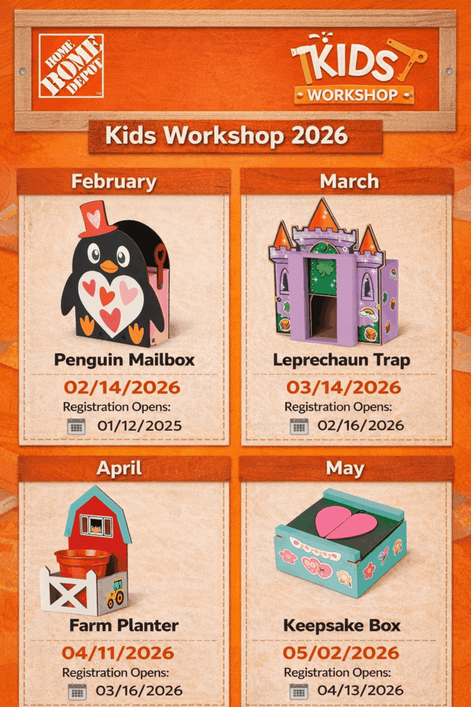 Bookmark this page and check back often—Home Depot sometimes adds bonus workshops or special seasonal projects throughout the year as part of the Kids 2026 Schedule.