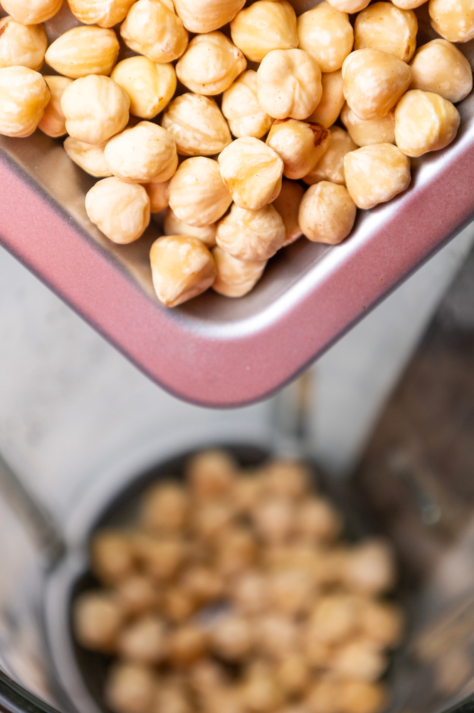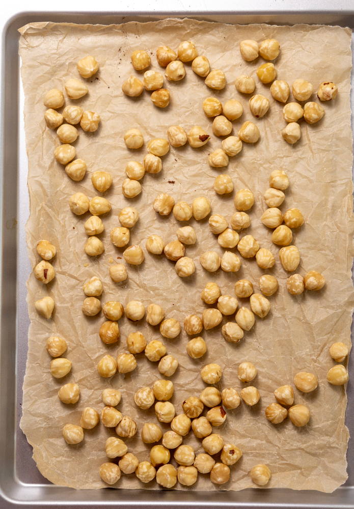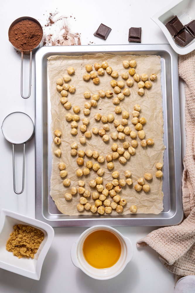 1.Preheat the oven to 325 degrees F and roast hazelnuts for about 10-15 minutes. It helps soften them and release the juices.