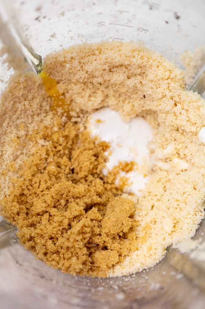 2. In a blender mix hazelnuts until fully smooth, add brown sugar and cream milk, maple syrup and pulse for one minute.