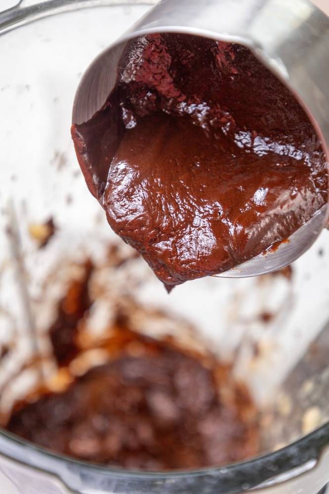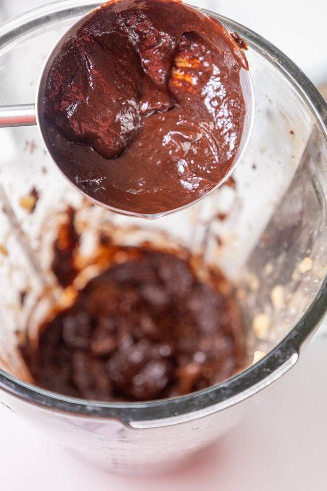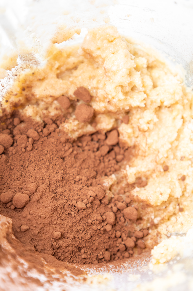 3. Melt dark chocolate in a microwave. Heat it up for up to 30 seconds. Once chocolate is melted add it to a blender with cocoa powder. Mix everything until fully combined.  Transfer the mixture into an airtight container.