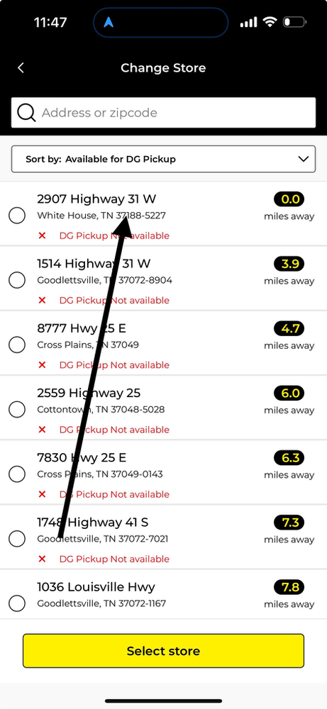 2. Change Store location to 2907 US-31W, White House, TN 37188: use the zipcode to search for local store then choose the above address. This will signal your app that you are at a combo store and should be able to scan pOpshelf labels. Even though you are not at that store and your store is not a combo store you will still get the prices for pOpshelf.