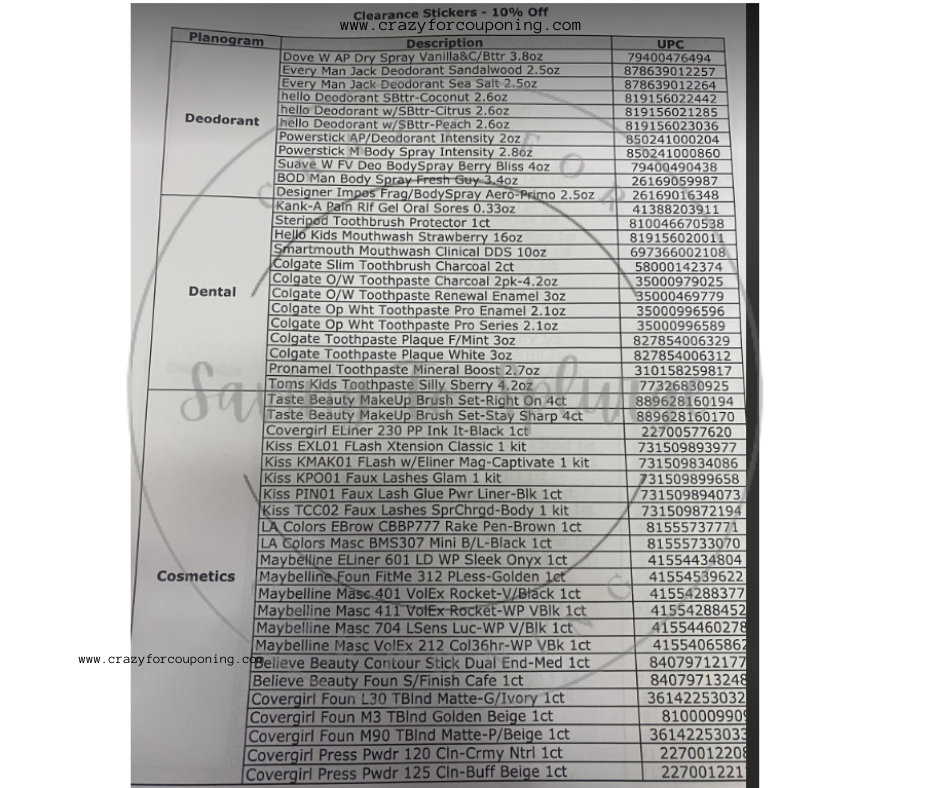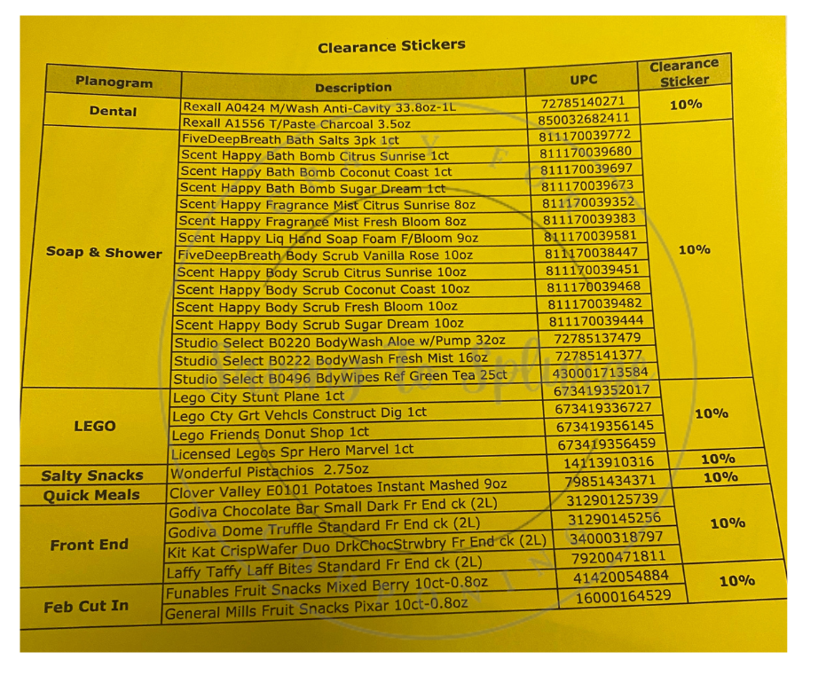 Check out the pages of lists sent to DG employees to mark down to clearance. These prices go into effect Tuesday, Jan 30. NOW WHY IS THIS LIST IMPORTANT? Because we haven't seen a clearance event in a while, so we are predicting a CORE clearance event is in the works. These are the items you will find in your CORE event. Remember that some stores are short staffed and these items will not be moved to the clearance section, so this list will help when that clearance sale comes around. The percentage listed on the list below is what these will be marked down starting 01/30.