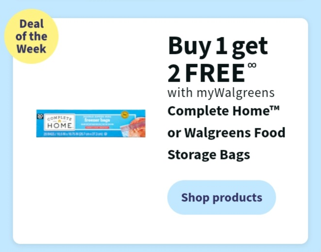 Starting 07/16 through 07/22 Complete Home Food Storage Bags are on sale again at Walgreens. This is a store sale and so coupons are needed for this deal.