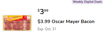 Oscar Mayer Bacon Select Varieties, 12-16 oz; Sale Price $5.99; $3.99 CARD & DIGITAL COUPON