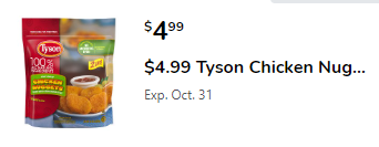 Tyson Chicken Nuggets, Tenders or Patties; Frozen, 22-32 oz Select Varieties; $4.99 CARD & DIGITAL COUPON