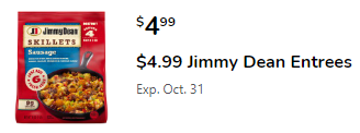 Jimmy Dean Entrée, 12.8-18.8 oz; Select Varieties; $4.99 CARD & DIGITAL COUPON
