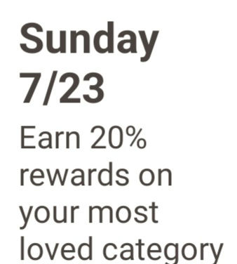 Sunday 07/23 earn 20% rewards on your most loved category.