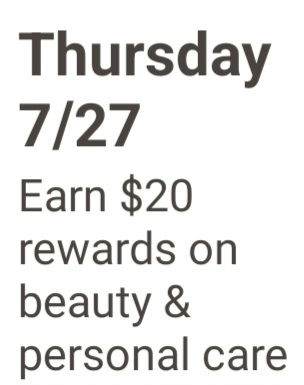 Thursday 07/27 earn $20 rewards on $45+ beauty and personal care.
