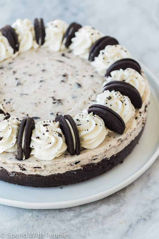 This No Bake Oreo Cheesecake is light, fluffy and creamy and loaded with Oreo chunks! Made with no oven and just a handful of ingredients!