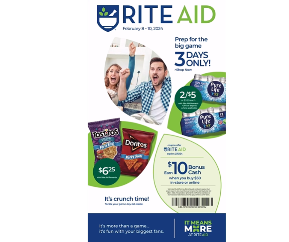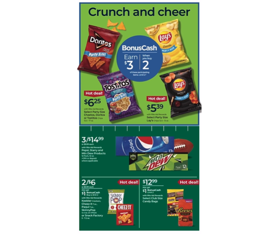 Select Party Size Cheetos, Doritos or Tostitos chips 13.5 – 17 oz; $6.25 with Rite Aid Rewards Get $3.00 Bonus Cash When You Buy 2 of these participating items. Limit 2