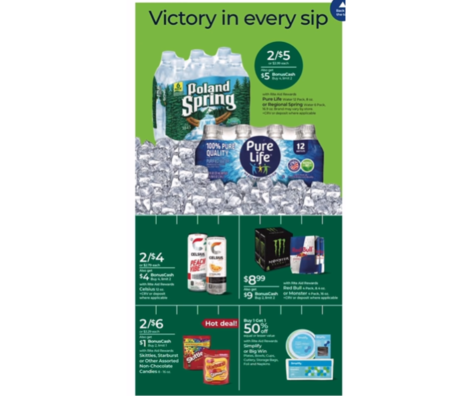 Red Bull 4 Pack, 8.4 oz. or Monster 4 Pack, 16 oz.; $8.99 Also get $9 BonusCash Buy 2, limit 2 with Rite Aid Rewards