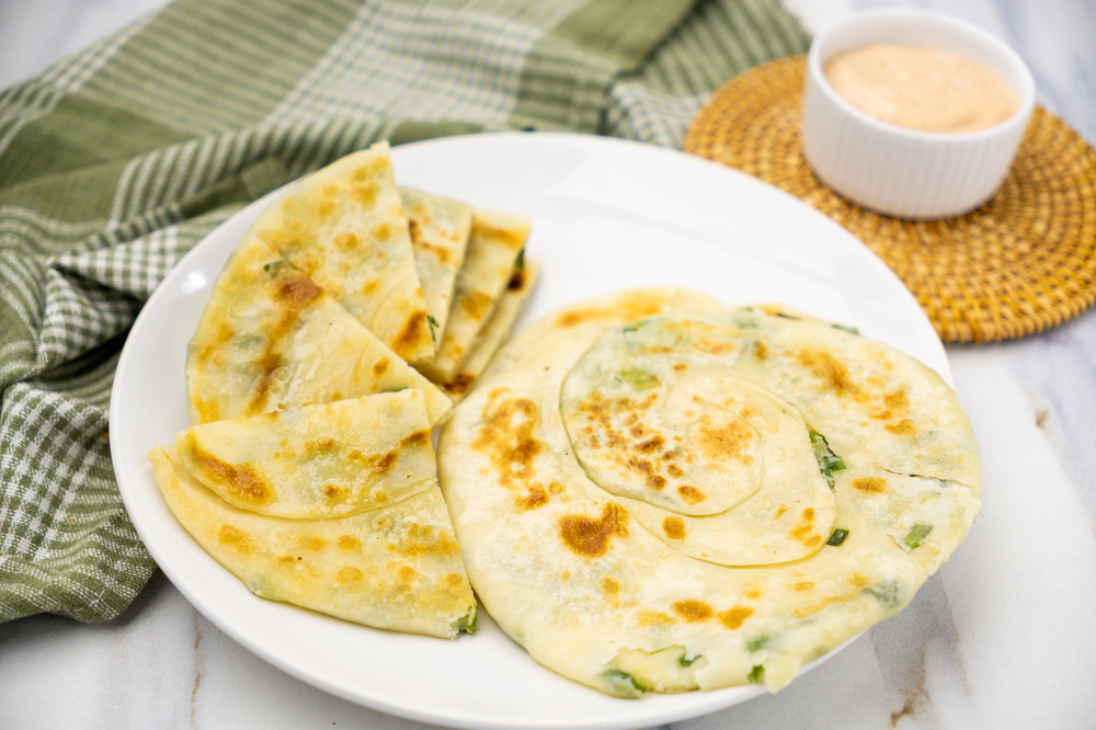• Serving: Cut the cooked pancakes into wedges and serve the hot scallion pancakes with your preferred dipping sauce.