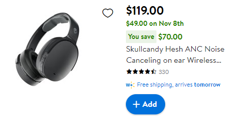 Calling all music lovers and bargain hunters! Brace yourselves for an incredible deal that will elevate your audio experience to a whole new level. Skullcandy Hesh ANC Noise Canceling on-ear Wireless Headphones are up for grabs at an unbelievable price of just $49.00, saving you a whopping $70.00 off the original price of $119.00! Get ready to immerse yourself in pure sonic bliss as we dive into all the details about this epic steal, exclusively available during Walmart's Black Friday sale. Mark your calendars for November 8th at 3pm ET if you prefer online shopping or head down to your local Walmart store on November 10th at 6am sharp – because this offer is simply too good to miss!