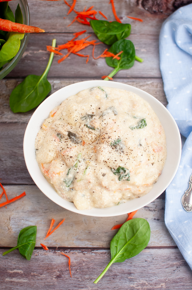 This creamy and hearty soup is packed with flavor and makes for a comforting meal on any day, especially during the colder months. The combination of tender chicken, soft potato gnocchi, and vegetables in a rich broth creates a perfect balance of textures and tastes.