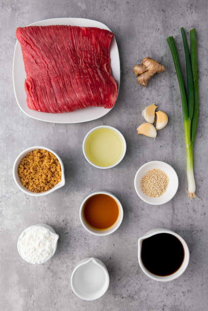 – Season flank steak with salt and pepper to taste, and coat with cornstarch. Mix until well combined.