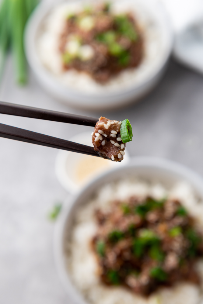 – Garnish the Mongolian beef with scallions and sesame seeds and serve over rice.