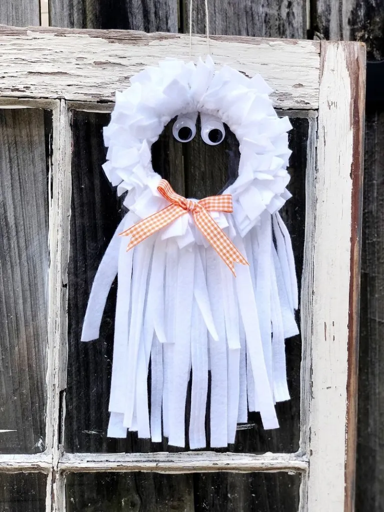 Save your felt scraps to make this really cute ghost wreath for your door. This idea is an adorable and easy way to add a great handmade touch to your Halloween decor.