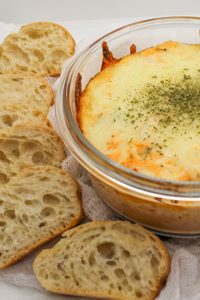 Not only is this pizza dip delicious, but it also makes for a great presentation at parties. Serve it in a bread bowl or casserole dish surrounded by tortilla chips, crackers, or slices of toasted baguette for dipping. Your guests will be impressed by both the taste and appearance of this dish.