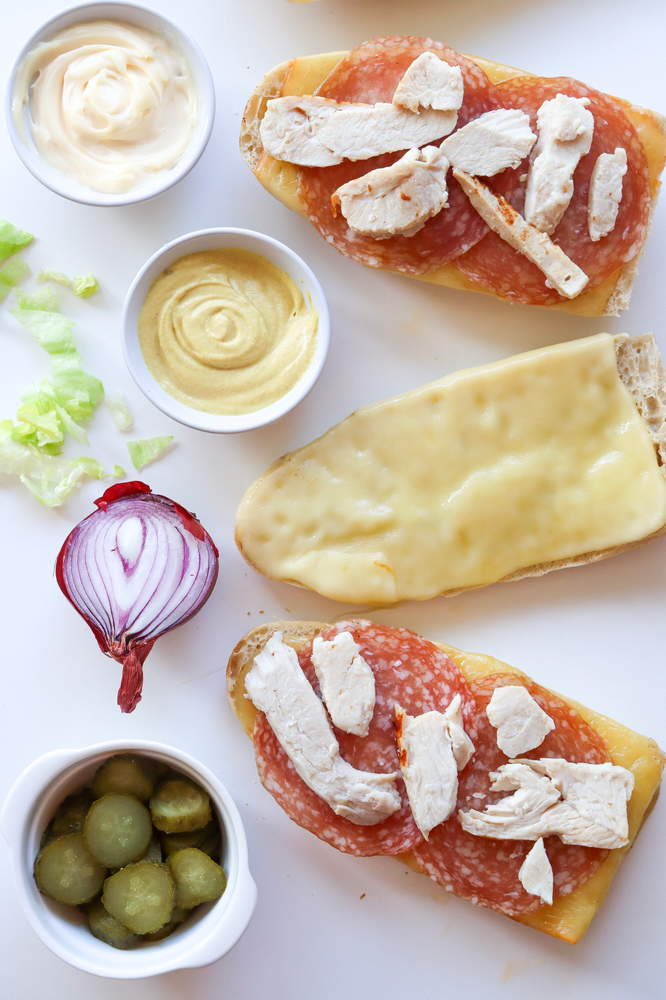 Instructions for your viral Viral Kylie Jenner Melted Cheese Salami Sandwich