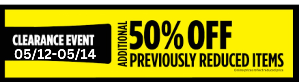 Between 5/12 – 5/14, the following products will ring at an ADDITIONAL 50% OFF the